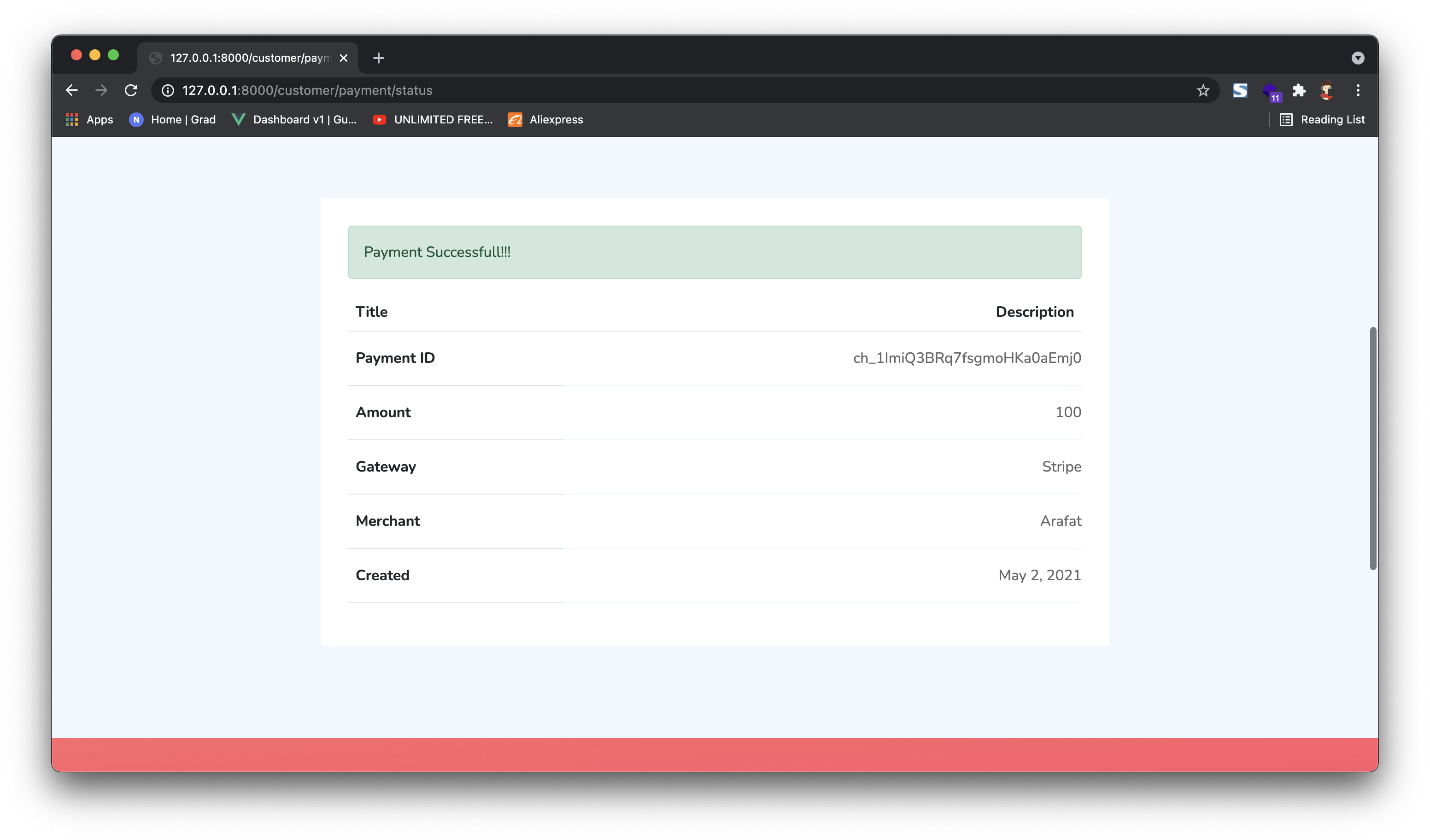 Step 5: If payment is successful you will be redirected to success page or if merchant added the fallback url then you will be redirected to desired website: